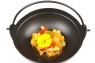Calamari marinati con 12 spezie, cucinato in un wok caldo per 2 ore con peperoni e cipolla. Il tutto guarnito con sesamo e cipollotto